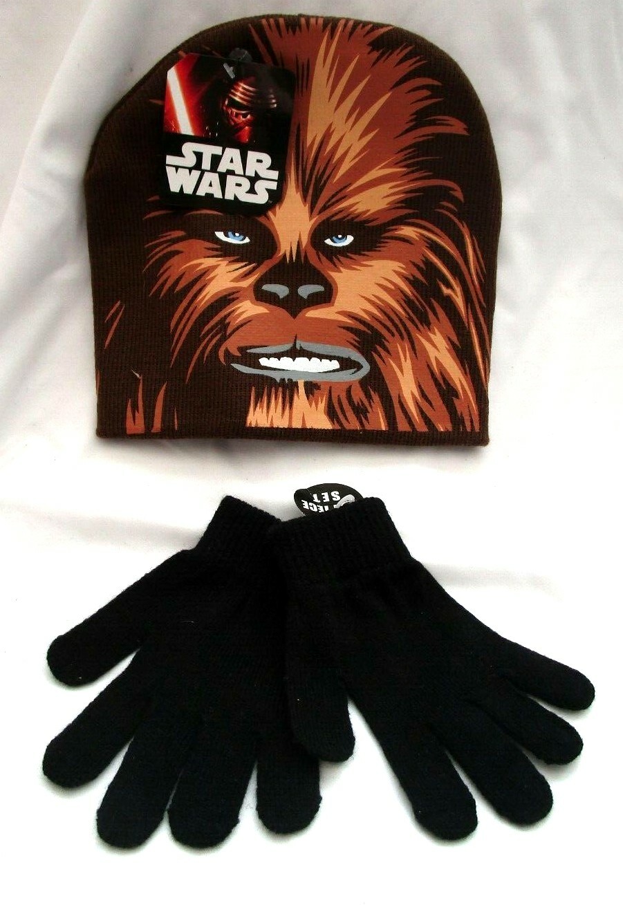 NEW Original Kid's Disney Star Wars Brown with Chewbacca face applique Beanie Hat Pilot Ski Cap and Black Knitted Gloves-New with Tags!