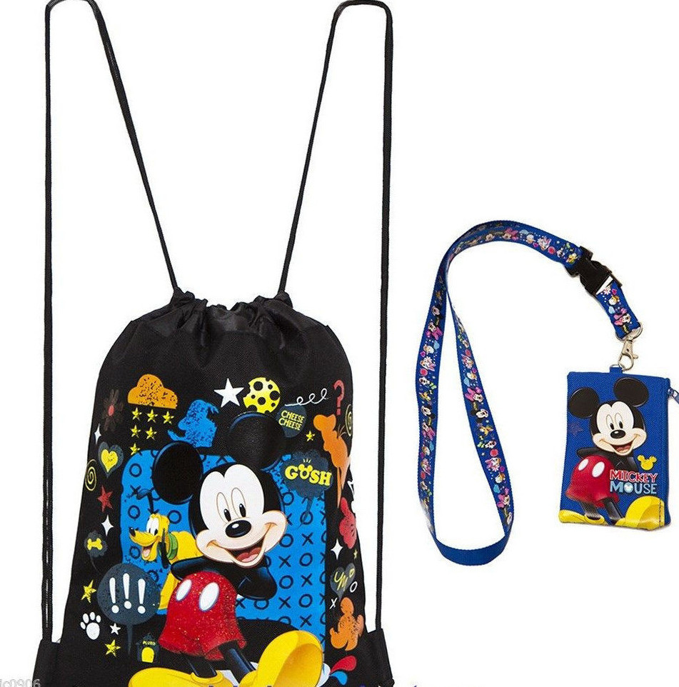 Includes ONE BLACK MICKEY MOUSE/PLUTO Drawsting Backpack as pictured and ONE MICKEY MOUSE BLUE Lanyard with Detachable Coin Pouch/Purse as pictured.