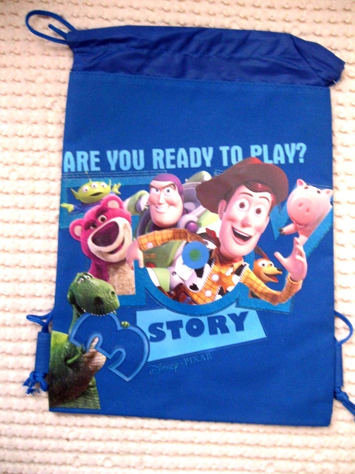 DISNEY THE TOY STORY 3 BUZZLIGHT YEAR WOODY AND FRIENDS BLUE DRAWSTRING BAG BACKPACK TRAVEL STRING POUCH TOTE DISNEYLAND-BRAND NEW WITH TAGS!