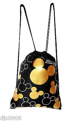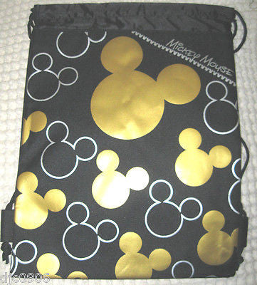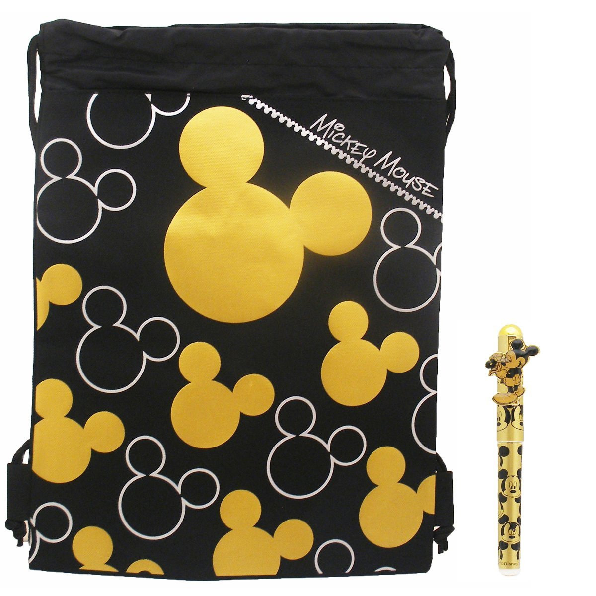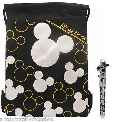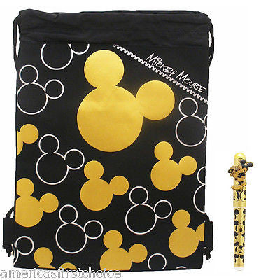 DISNEY MICKEY MOUSE BLACK AND GOLD SHAPES DRAWSTRING BAG BACKPACK TRAVEL STRING POUCH AND MICKEY MOUSE GOLD COLLECTOR'S BALL POINT PEN-DISNEYLAND-BRAND NEW WITH TAGS!