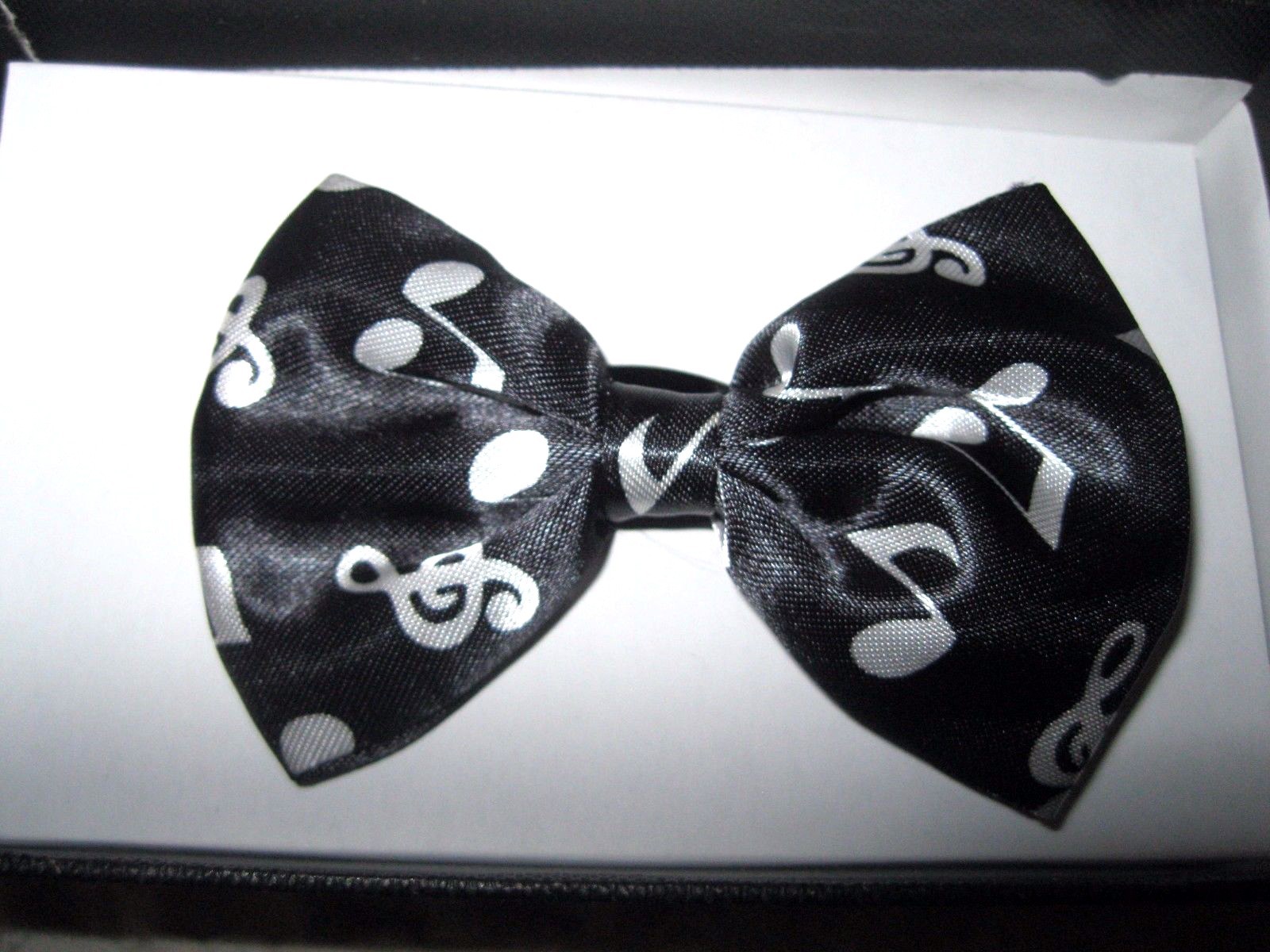 - UNISEX KID'S FASHION BLACK WITH WHITE MUSICAL NOTES TUXEDO ADJUSTABLE ALL POLYESTER SILK BOW TIE-NEW IN FACTORY BOX!