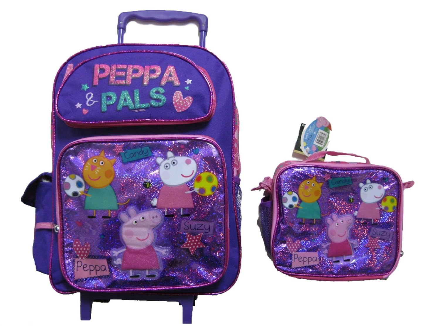 PEPPA PIG 16" ROLLING WITH HANDLE BACKPACK AND MATCHING PEPPA PIG LUNCH BOX!!!BRAND NEW WITH TAGS!!