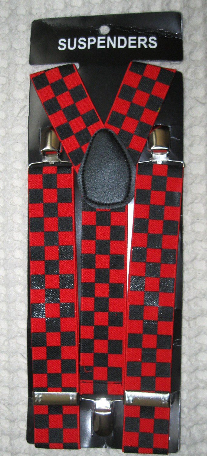 •  BLACK AND RED CHECKERS CHECKERED DIAMONDS ADJUSTABLE SUSPENDERS-BRAND NEW IN FACTORY PACKAGE!