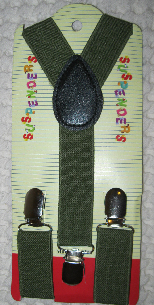 - KIDS BOYS GIRLS ARMY/OLIVE GREEN HEAVY DUTY .60" WIDE Y-STYLE SUSPENDERS-BRAND NEW FACTORY SEALED!