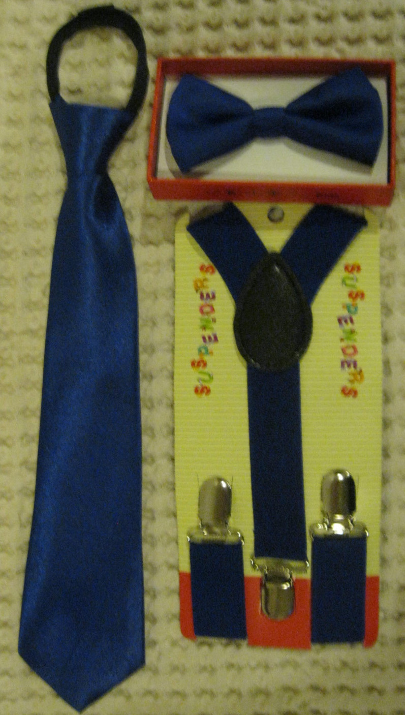 • UNISEX KID'S BOYS GIRLS FASHION SOLID ROYAL BLUE TUXEDO ADJUSTABLE ALL POLYESTER SILK BOW TIE-NEW IN FACTORY BOX, SOLID ROYAL BLUE 11 1/2" PRE-TIED ADJUSTABLE NECK TIE, AND SOLID ROYAL BLUE ADJUSTABLE Y-BACK SUSPENDERS!