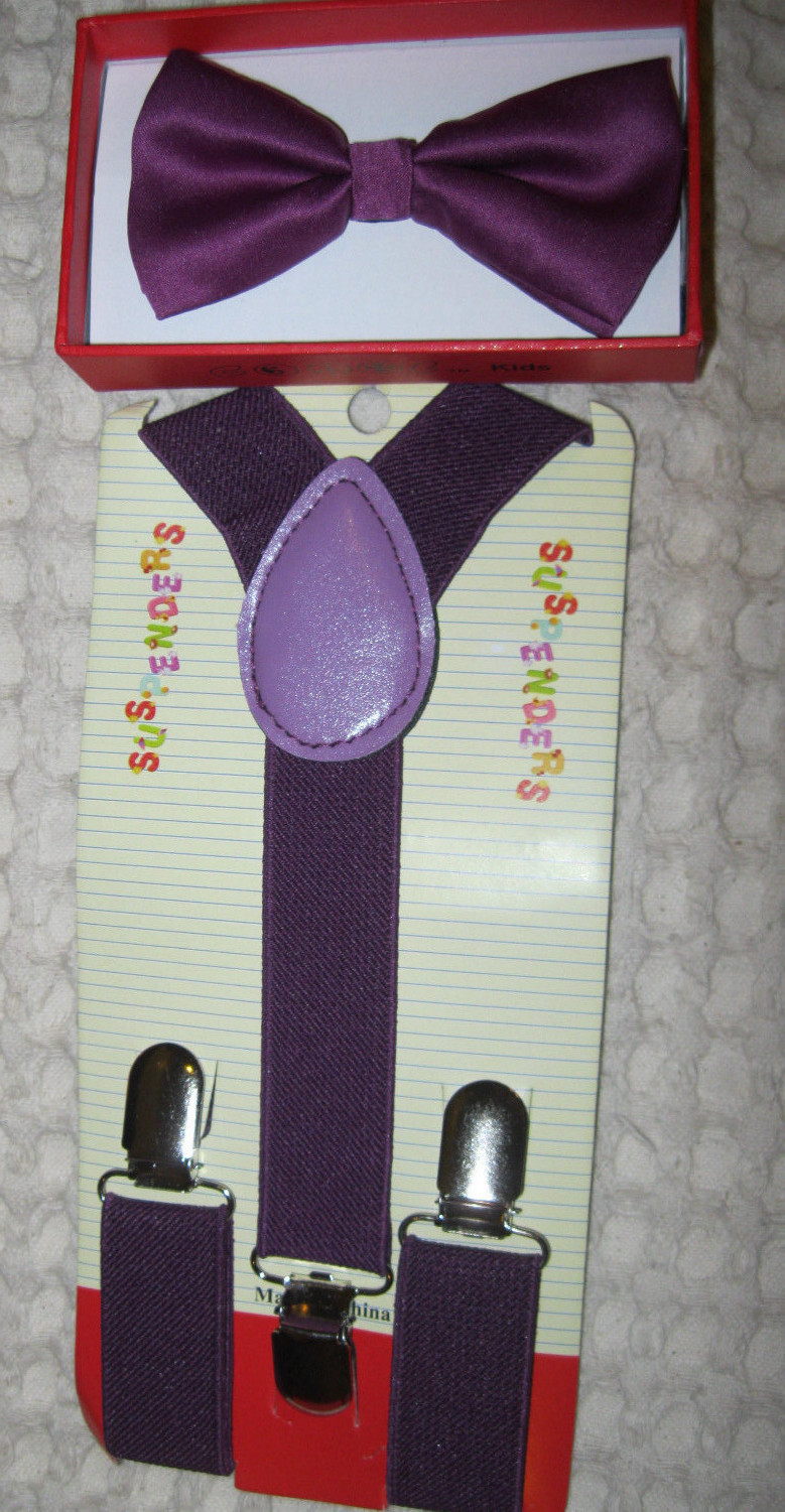 - UNISEX KID'S FASHION SOLID PURPLE TUXEDO ADJUSTABLE ALL POLYESTER SILK BOW TIE-NEW IN FACTORY BOX AND SOLID PURPLE ADJUSTABLE SUSPENDERS!