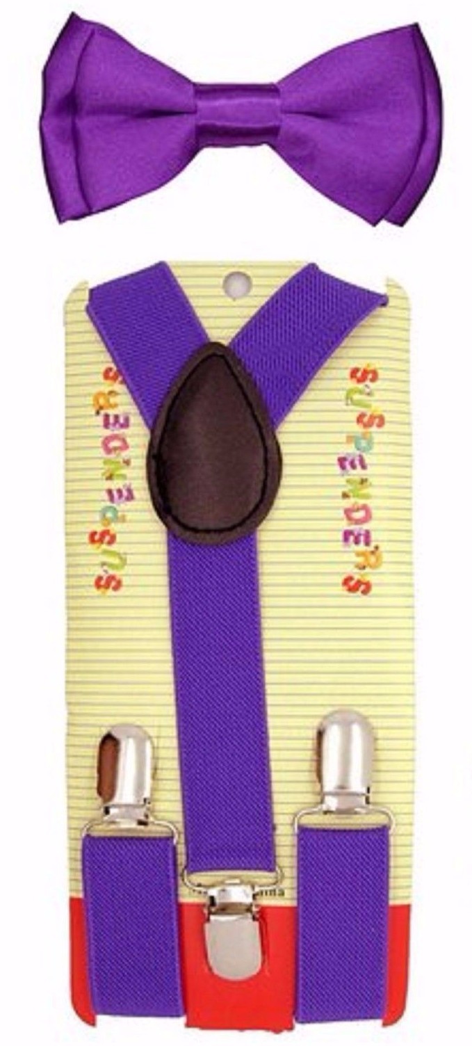 - UNISEX KID'S FASHION SOLID PURPLE TUXEDO ADJUSTABLE ALL POLYESTER SILK BOW TIE-NEW IN FACTORY BOX AND SOLID PURPLE ADJUSTABLE SUSPENDERS!