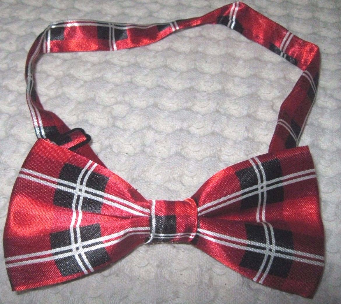 - UNISEX FASHION BLACK WHITE RED PLAID DESIGN TUXEDO ADJUSTABLE ALL POLYESTER SILK BOW TIE-NEW IN FACTORY BOX!