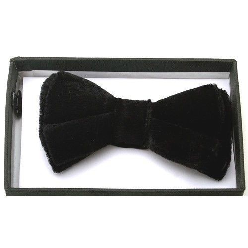 - UNISEX FASHION BLACK SOFT VELVET TUXEDO ADJUSTABLE ALL POLYESTER SILK BOW TIE-NEW IN FACTORY BOX!