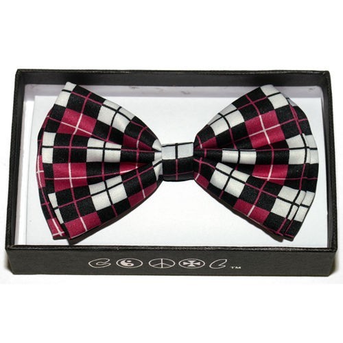 - UNISEX FASHION BLACK WHITE PINK PLAID DESIGN RETRO TUXEDO ADJUSTABLE ALL POLYESTER SILK BOW TIE-NEW IN FACTORY BOX!