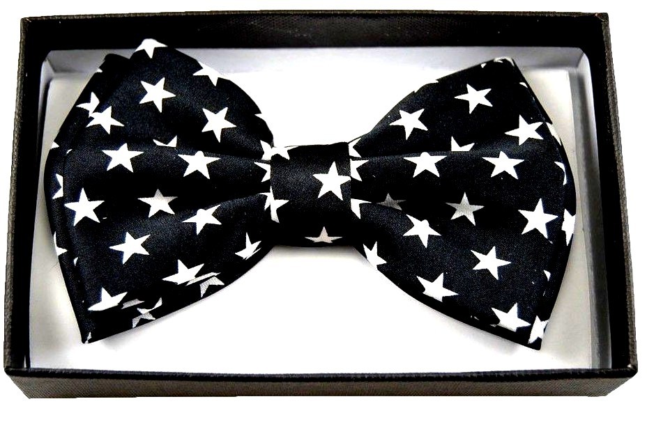 BLACK WITH WHITE STARS STARRED ADJUSTABLE BOW TIE BOWTIE-NEW IN BOX!STARS BOWTIE