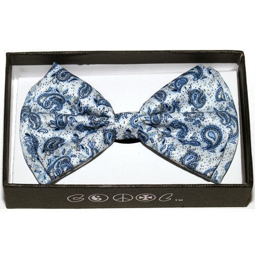• UNISEX FASHION BLUE PAISLEY PATTERN DESIGN RETRO TUXEDO ADJUSTABLE ALL POLYESTER SILK BOW TIE-NEW IN FACTORY BOX!