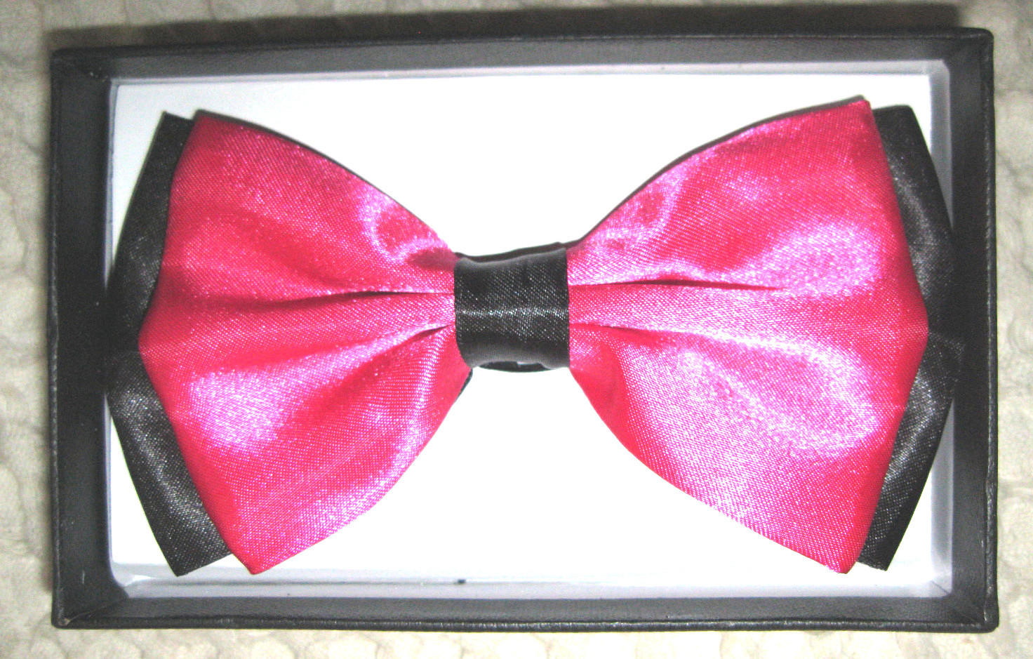- UNISEX FASHION SOLID HOT PINK WITH BLACK END TIPS ADJUSTABLE ALL POLYESTER SILK BOW TIE-NEW IN FACTORY BOX!