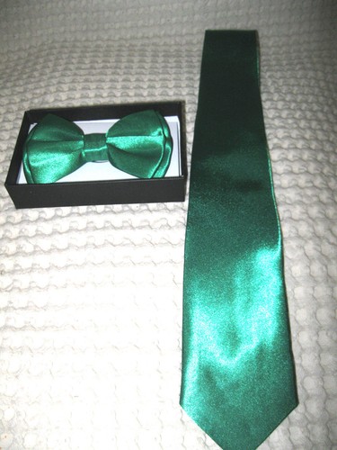 • UNISEX FASHION CHRISTMAS/ST. PATRICK'S DAY ST. PATTY'S SHINY GREEN ADJUSTABLE ALL POLYESTER SILK BOW TIE-NEW IN FACTORY BOX AND SHINY GREEN MATCHING  NECK TIE COMBO!
