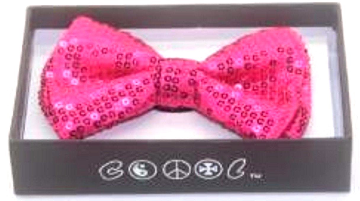 • UNISEX FASHION HOT PINK SEQUIN TUXEDO ADJUSTABLE ALL POLYESTER SILK BOW TIE-NEW IN FACTORY BOX!