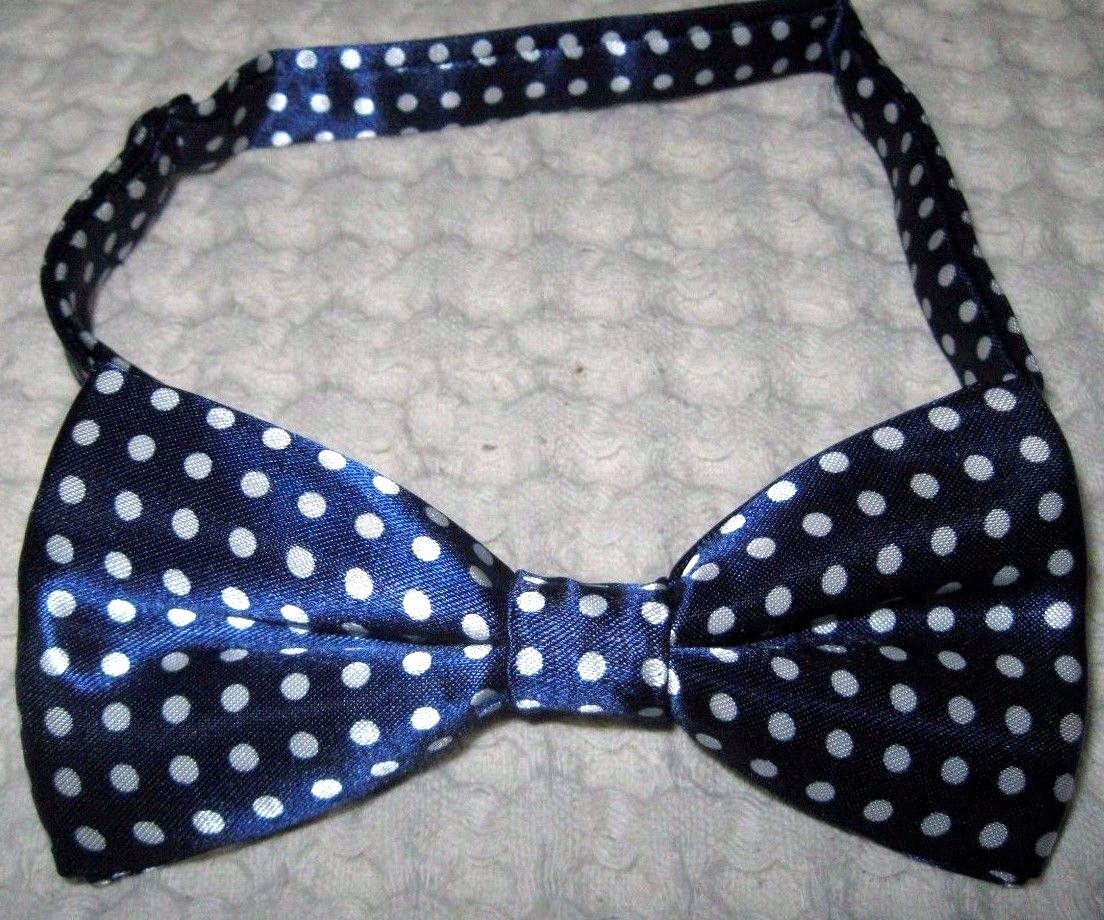 - UNISEX FASHION NAVY BLUE WITH WHITE POLKA DOTS ADJUSTABLE ALL POLYESTER SILK BOW TIE-NEW IN FACTORY BOX!