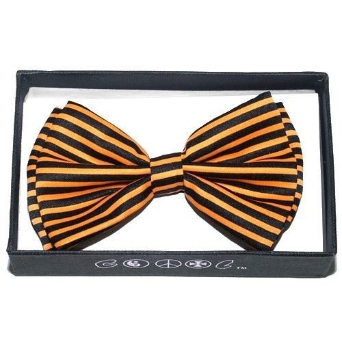 - UNISEX FASHION BLACK & ORANGE STRIPES TUXEDO ADJUSTABLE ALL POLYESTER SILK BOW TIE-NEW IN FACTORY BOX!