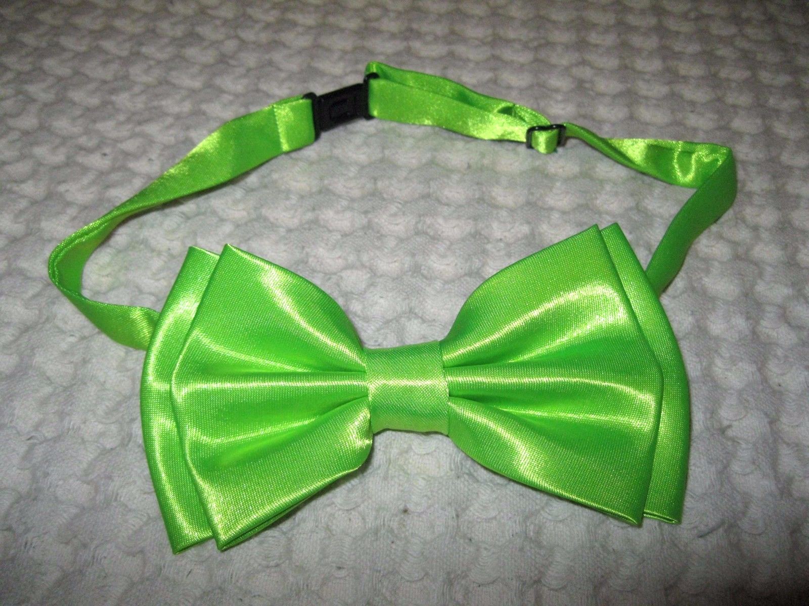 UNISEX FASHION SHINY LIME GREEN DESIGN ADJUSTABLE ALL POLYESTER SILK BOW TIE-NEW IN FACTORY BOX!
