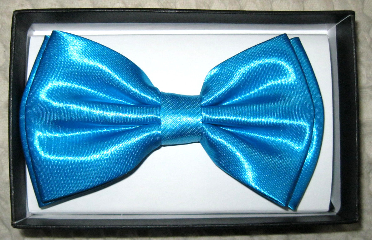 SOLID BRIGHT FRENCH BLUE ADJUSTABLE TUXEDO BOW TIE-NEW GIFT BOX!BLUE BOW TIE