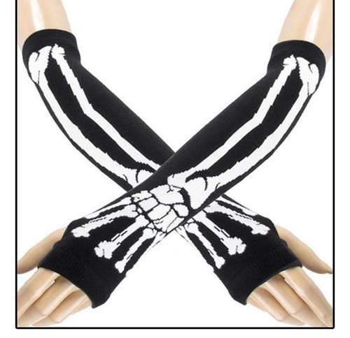 Unisex Fingerless Punk Rocker Black with White Skeleton Gloves Arm Warmers -Brand New in Package!