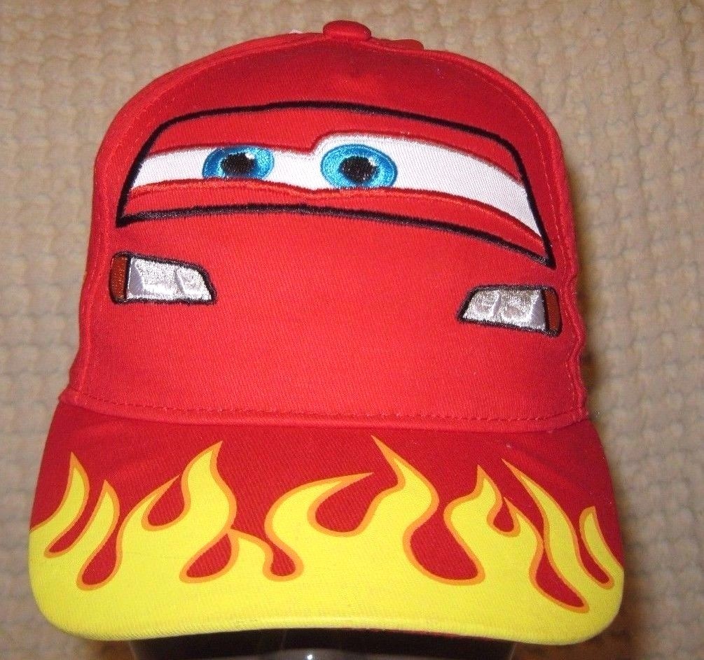 * FANTASTIC SCREEN PRINT OF CHARACTER CARS LIGHTNING MCQUEEN WITH FLAMES BASEBALL LOGO THE BACK OF CAP.