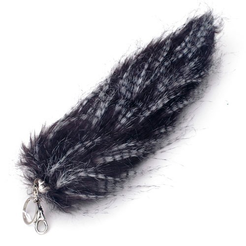 BLACK WITH WHITE STRIPES FAUX FOX TAIL KEYCHAIN RING PURSE TASSLE BELT CLIP 12"