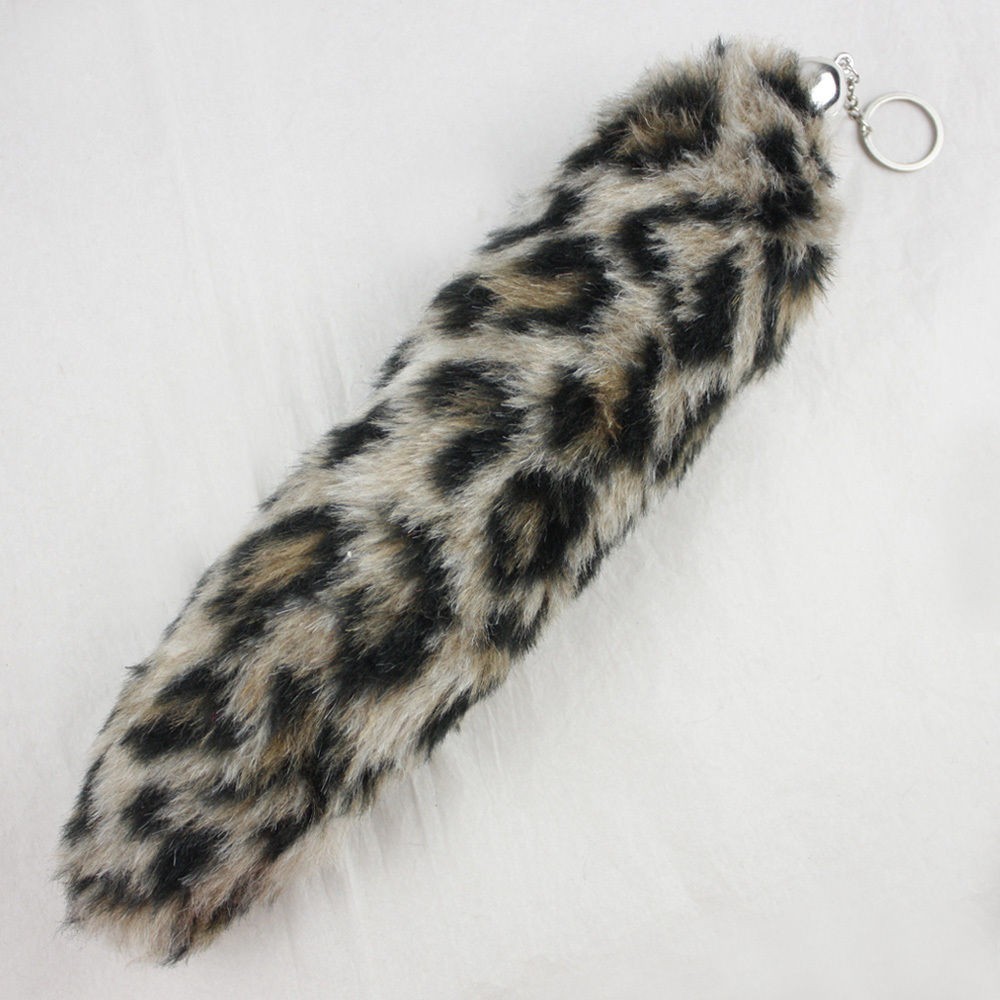 LARGE LEOPARD PRINT FAUX TIGERS TAIL FOX TAIL KEYCHAIN RING PURSE TASSLE BELT CLIP 10"-12"-NEW!