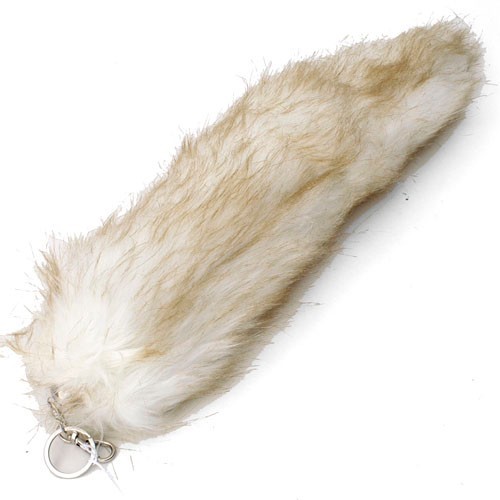 LIGHT BROWN BEIGE TAN WHITE FAUX FOX TAIL KEYCHAIN RING PURSE TASSLE BELT CLIP 10"-12"-NEW!