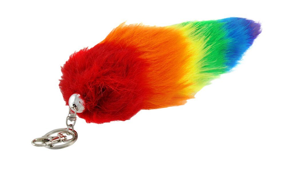RAINBOW FAUX FOXTAIL FOX TAIL KEYCHAIN RING PURSE TASSLE BELT CLIP 10"-12"-NEW!