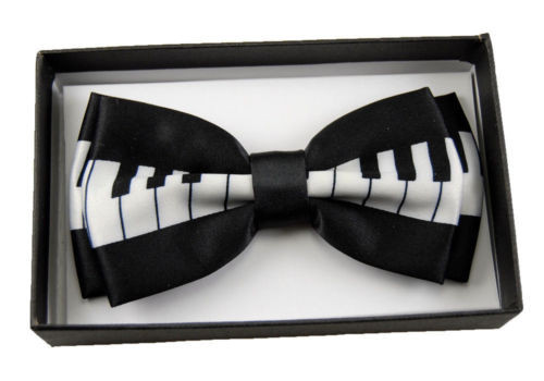 • UNISEX FASHION BLACK AND WHITE PIANO KEYS PIANO KEYBOARD ADJUSTABLE ALL POLYESTER SILK BOW TIE -NEW IN FACTORY BOX!
