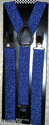 SOLID NEON BLUE GLITTERED HEAVY DUTY 1" WIDE Y-STYLE SUSPENDERS-BRAND NEW FACTORY SEALED!