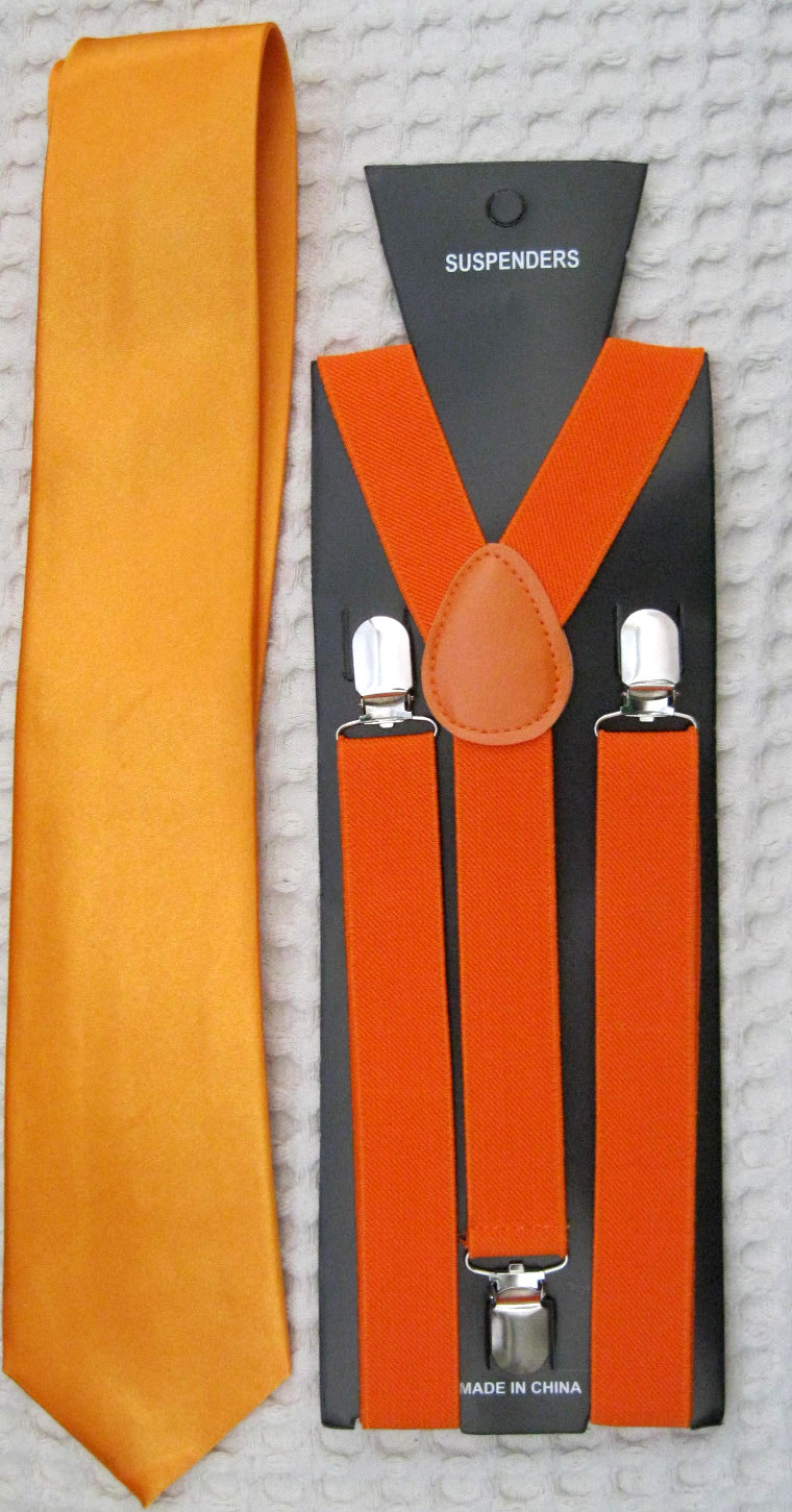 - UNISEX FASHION SOLID BRIGHT ORANGE ADJUSTABLE POLYESTER NECK TIE AND SOLID ORANGE ADJUSTABLE SUSPENDERS COMBO-NEW IN FACTORY BOX!