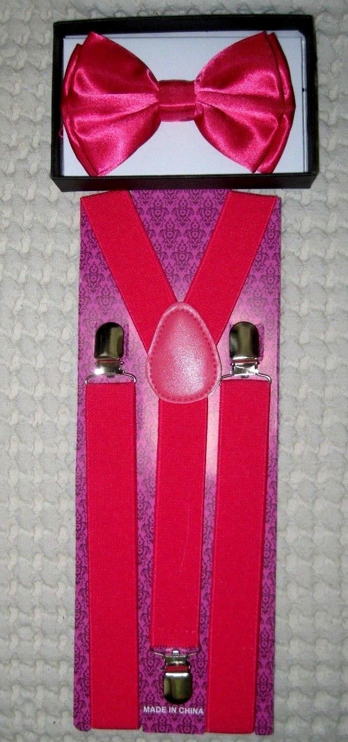 Hot Pink Adjustable Bow Tie & Solid Pink Adjustable Suspenders Combo-New!v2