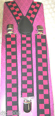 PINK AND BLACK CHECKERED CHECKER HEAVY DUTY 1" WIDE Y-STYLE SUSPENDERS-BRAND NEW FACTORY SEALED!