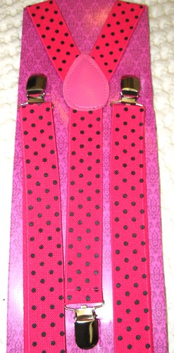HOT PINK WITH BLACK POLKA DOTS ADJUSTABLE Y-BACK SUSPENDERS-NEW IN PACKAGE!