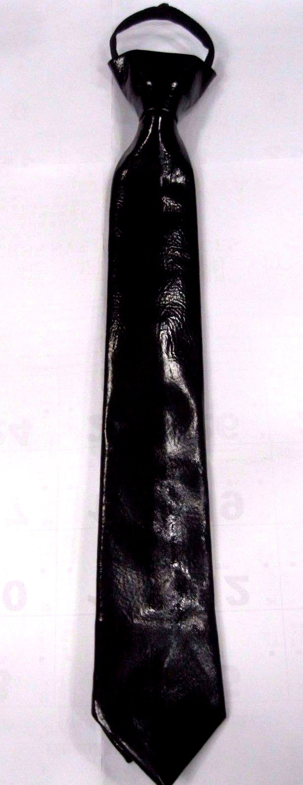 KID'S TEEN'S YOUNG ADULTS SOLID BLACK FAUX LEATHER ADJUSTABLE 14" PRE-TIED NECK TIE (L). "HIGH QUALITY" AFFORDABLE 14" PRE-TIED NECK TIE. THE NECK TIE IS MADE OF FAUX LEATHER. This pre-tied tie simply zips open, and zips up closed giving you the perfect knot every time!