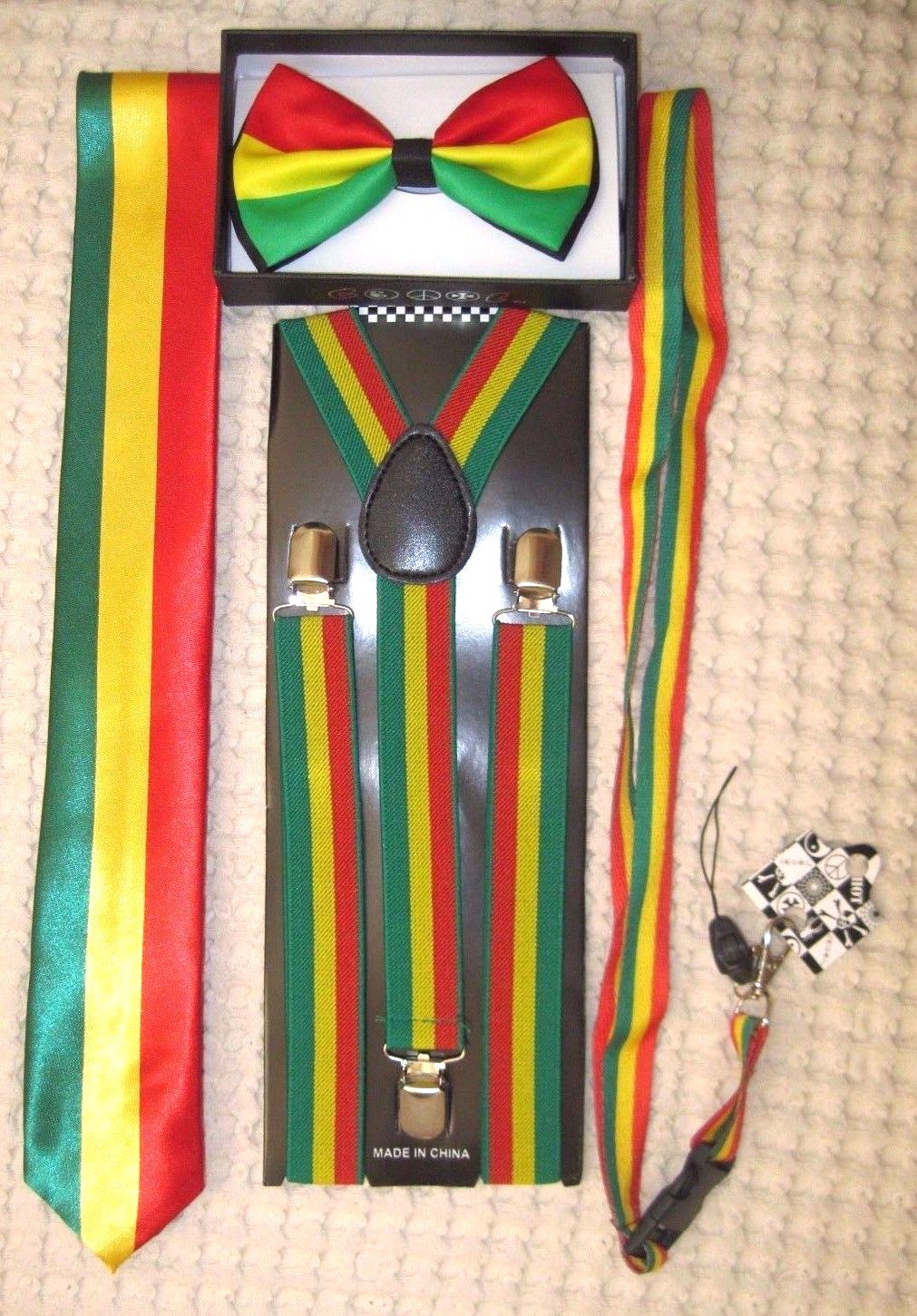 Rasta Stripes Bow Tie,Rasta NeckTie,Rasta Stripes Suspenders&Rasta Lanyard-NEW1