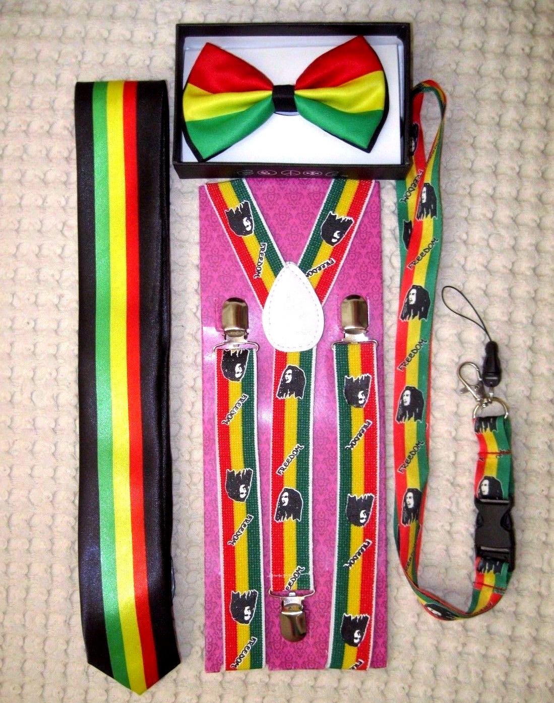 Rasta Stripes Bow Tie,Rasta NeckTie,Rasta Stripes Suspenders&Rasta Lanyard-NEW17