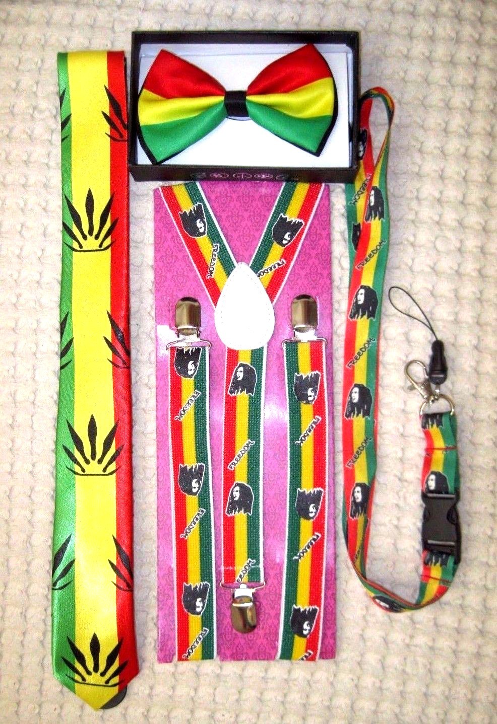 Rasta Stripes Bow Tie,Rasta NeckTie,Rasta Stripes Suspenders&Rasta Lanyard-NEW18
