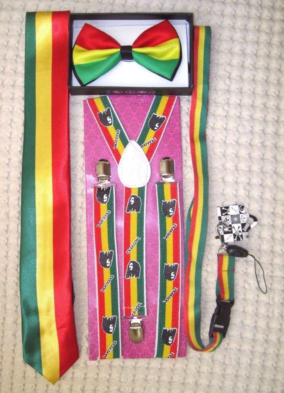 Rasta Stripes Bow Tie,Rasta NeckTie,Rasta Stripes Suspenders&Rasta Lanyard-NEW20