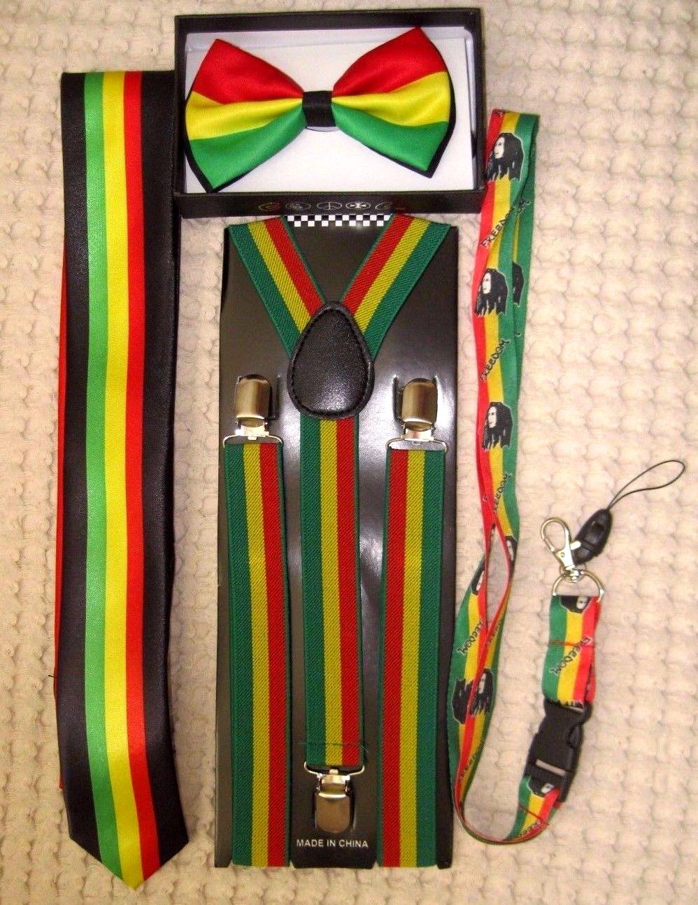 Rasta Stripes Bow Tie,Rasta NeckTie,Rasta Stripes Suspenders&Rasta Lanyard-NEW9