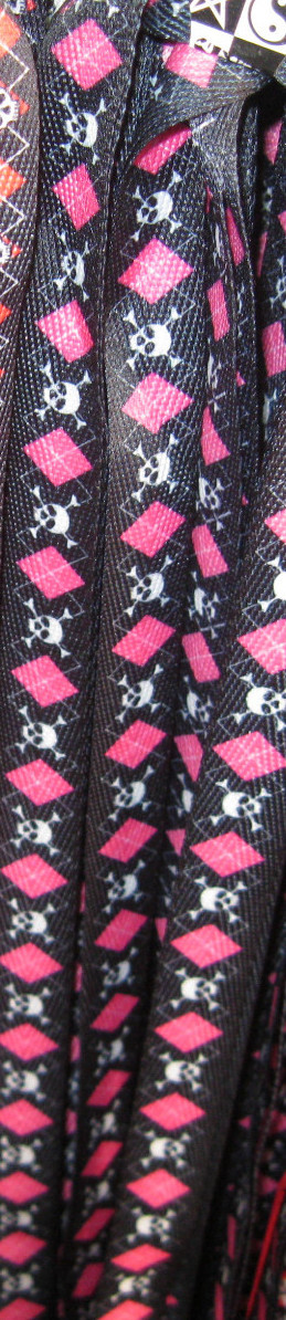 What You Will Get: Pair of Black and Pink Checkered Diamonds Gargoyle Skull and Cross Bones Thick Shoe laces as pictured.