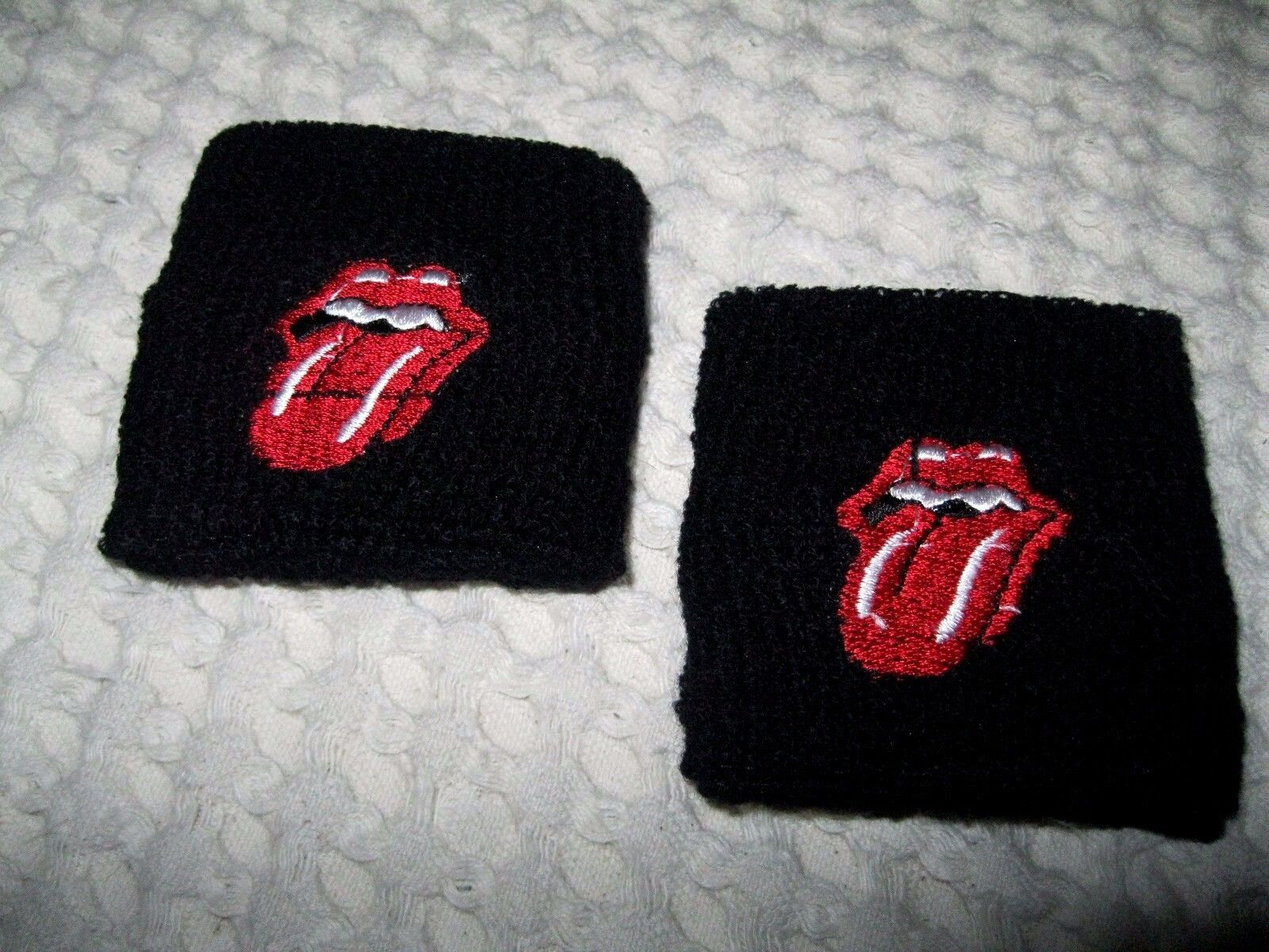 UNISEX FASHION PAIR OF IBLACK WITH ROLLING STONES RED TONGUES WRISTBANDS SWEATBANDS NEW IN FACTORY BOX!