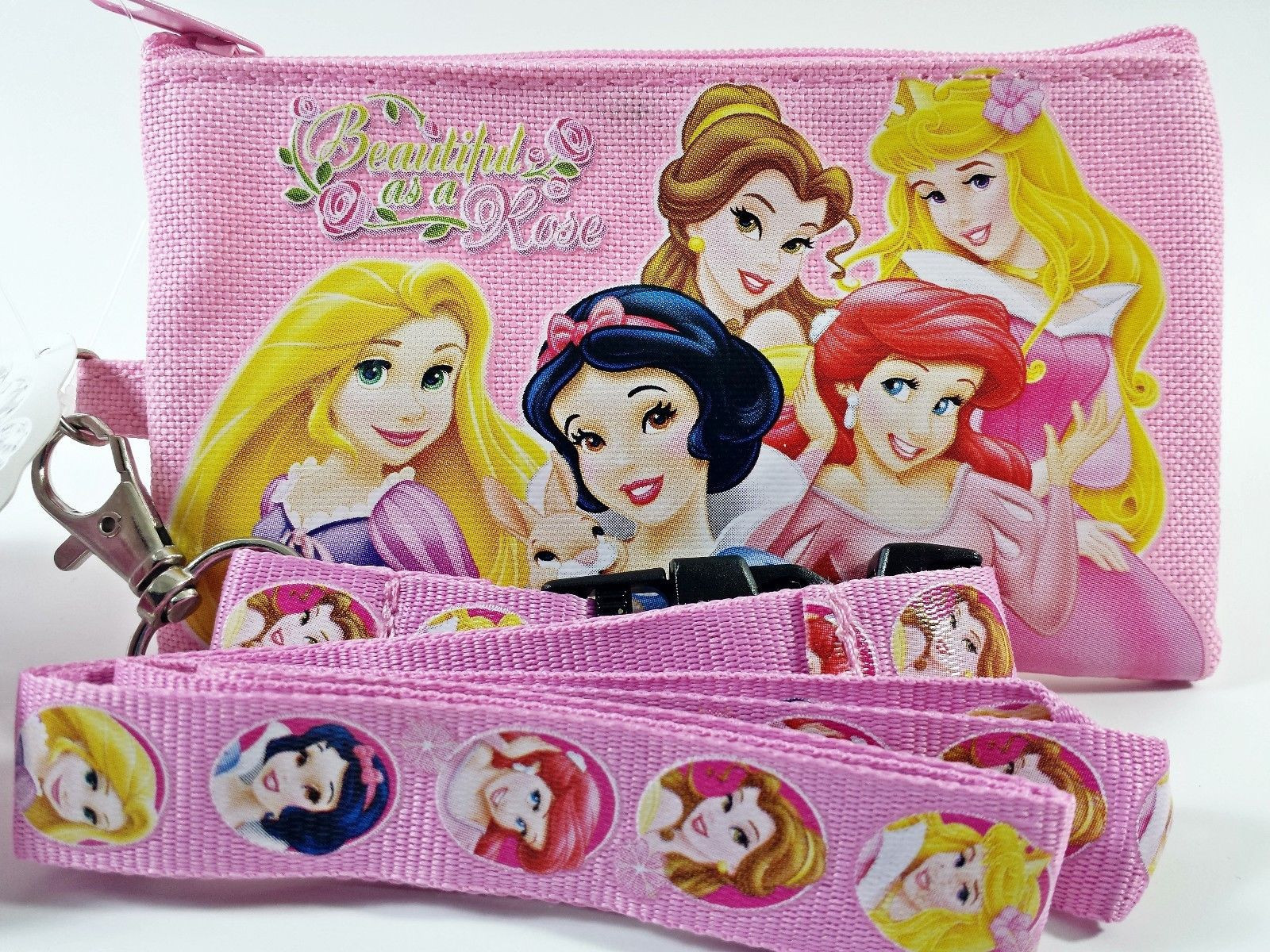 DISNEY PRINCESS AND FRIENDS BEAUTIFUL AS A ROSE LANYARD WITH DETACHABLE COIN POUCH/PURSE-NEW IN PACKAGES!
