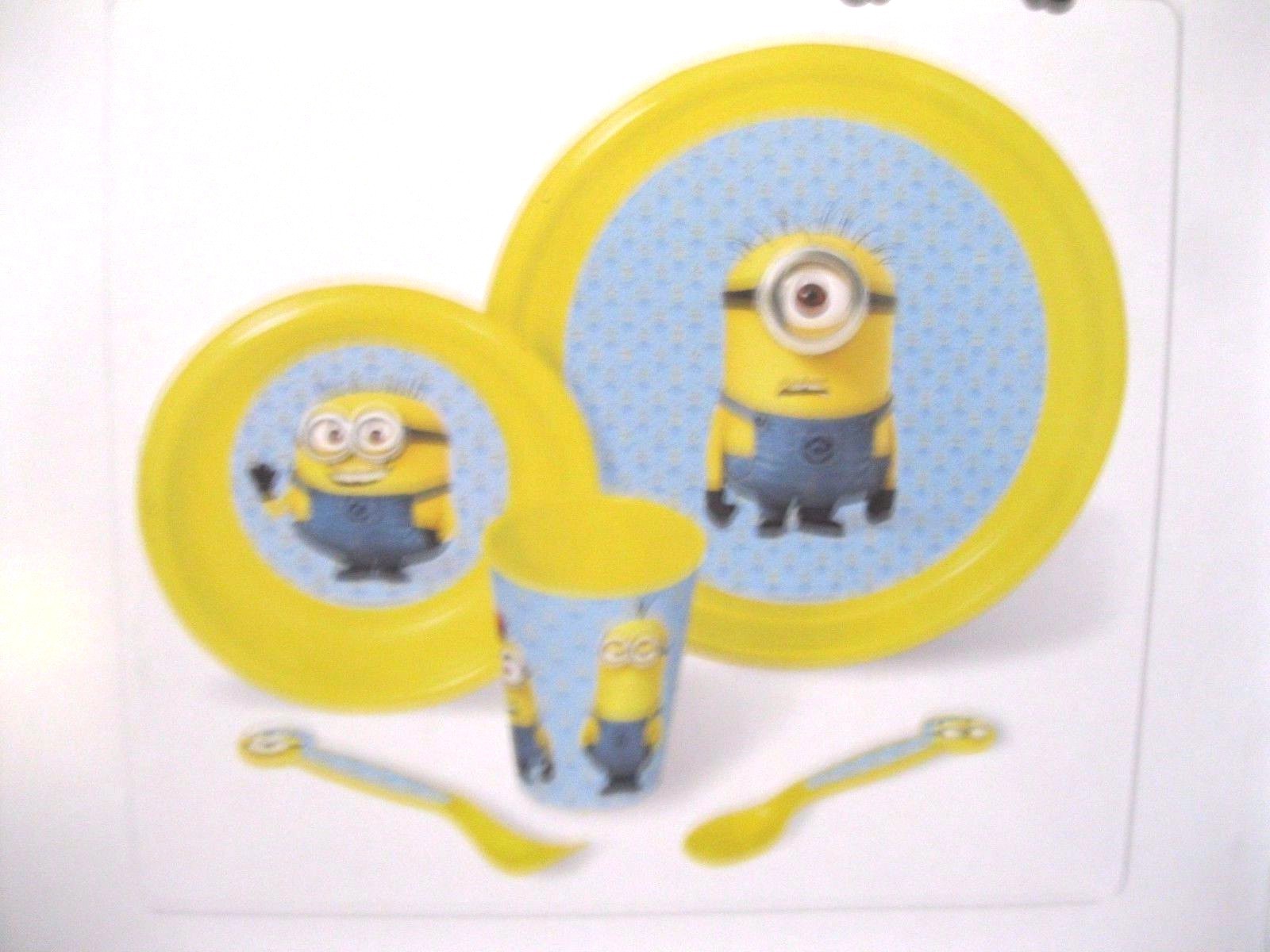 Despicable Me2 Minions 5 pc Mealtime Dinnerware Set Plate,Bowl,Flatware&Cup-New