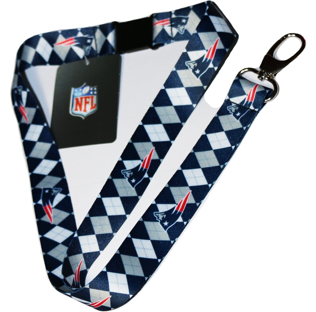 Patriots Blue Argyle Licensed NFL Keychain/ID Holder Detachable Lanyard-New!