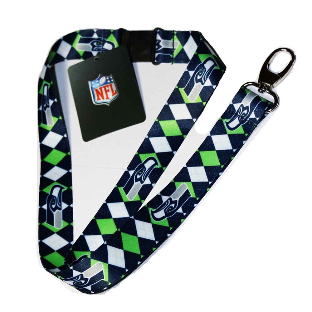 Seahawks Blue/Green Argyle Licensed NFL Keychain/ID Holder Detachable Lanyard