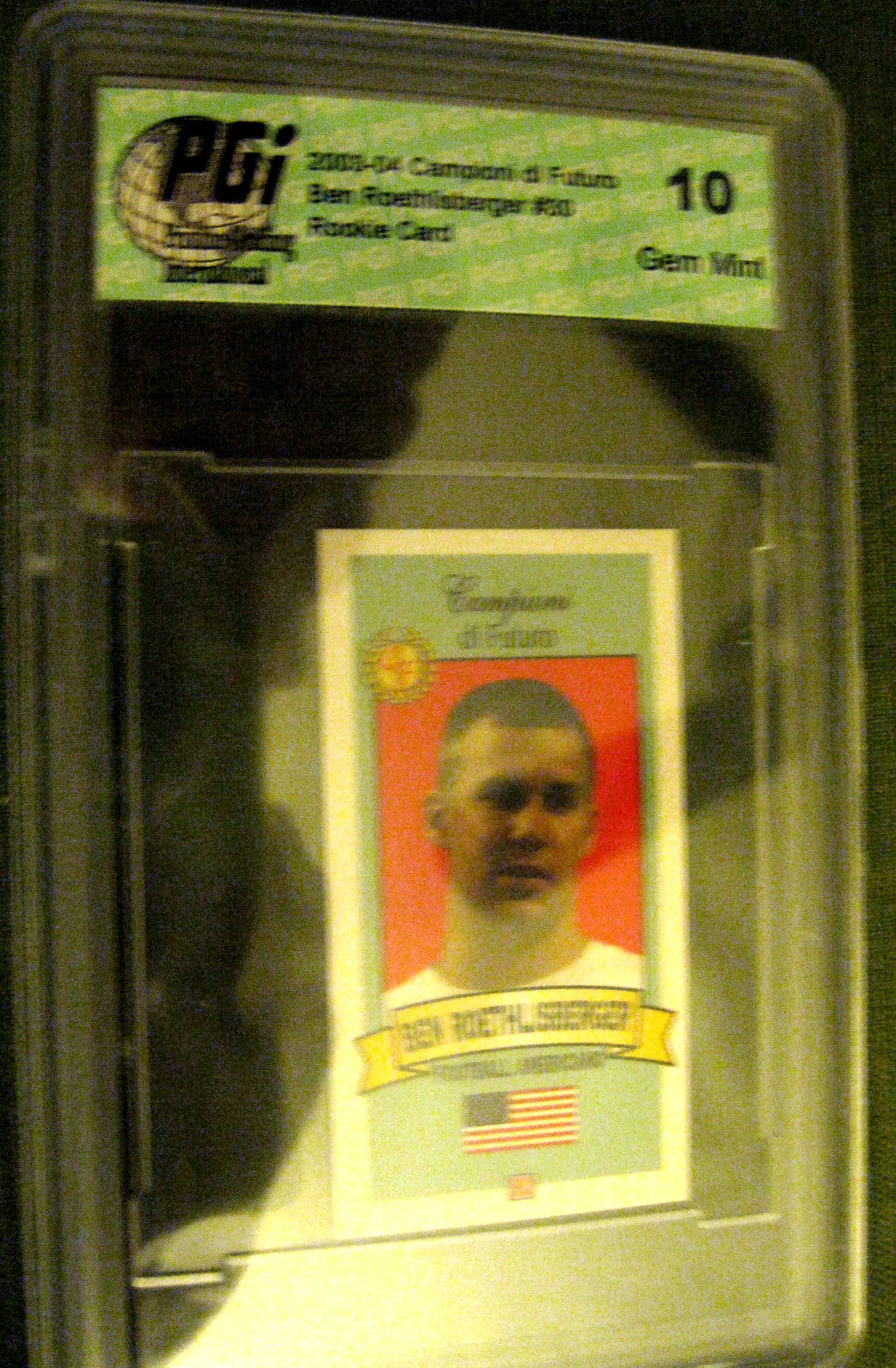 The item you are buying an authentic CAMPIONI DI FUTURE PRE-ROOKIE CARD#30 GRADED GEM MINT PGI 10 ON THE CARD OF BEN ROETHLISBERGER FROM 2003-2004 CAMPIONI DI FUTURE. This PRE-ROOKIE Card is Authenticated by CAMPIONI DI FUTURE,GRADED GEM MINT PGI 10 ON THE CARD BY PRISTINE GRADING INTERNATIONAL, please see scan for details!