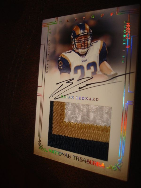 BRIAN LEONARD NATIONAL TREASURES AUTO 3-CLR PATCH #/99-ST. LOUIS RAMS/BUCANEERS