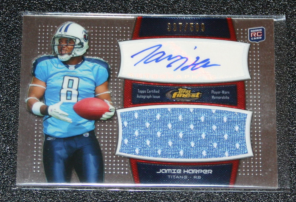 JAMIE HARPER RC 2011Topps Finest Rookie Patch Autograph #337/589-Titans RB Auto